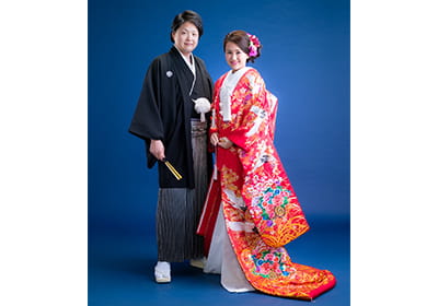 新婦衣裳・新郎衣裳・着付・ヘアメイク付です。