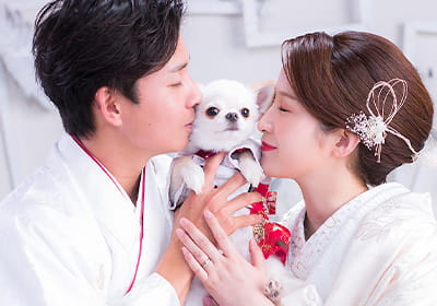 ご両親様との集合写真やペットとの